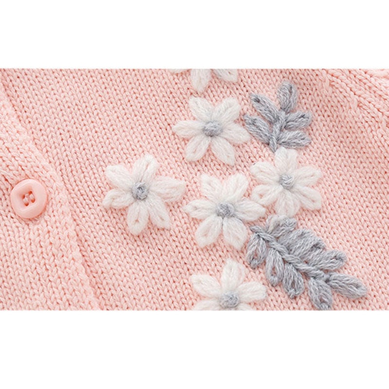 – Detalhes em um bordado floral delicado e um elegante babado nos ombros, acompanha um gorro;